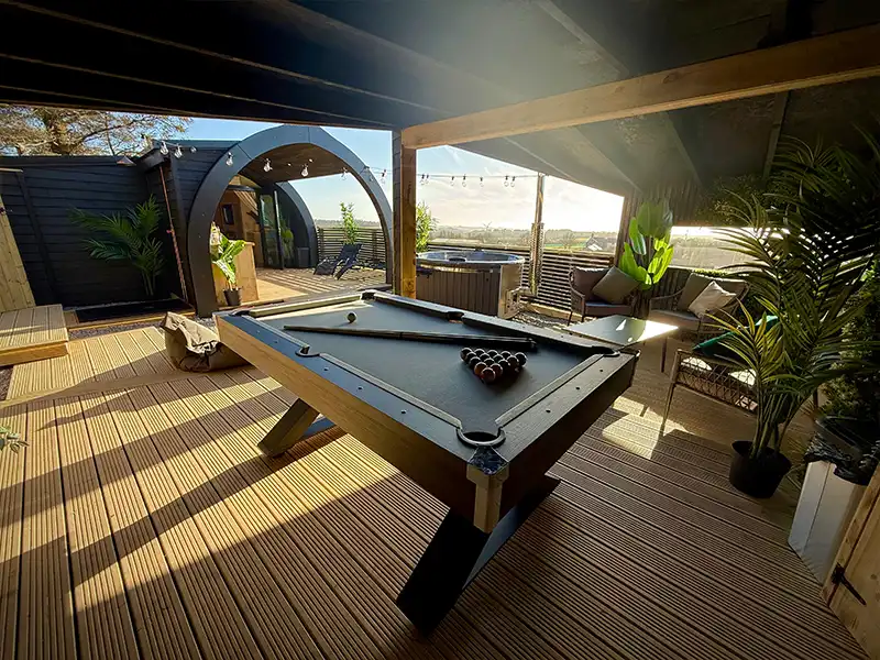 🎱 Fully covered outdoor pool table – enjoy entertainment rain or shine