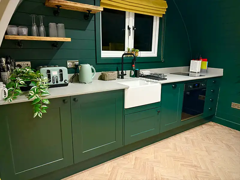 As with all units at The Secret Garden Glamping, everything you need is provided—from plush towels and robes to a fully equipped kitchenette with quality cookware and tableware. All that’s left for you to do is arrive, settle in, and let the magic of Cornwall do the rest.